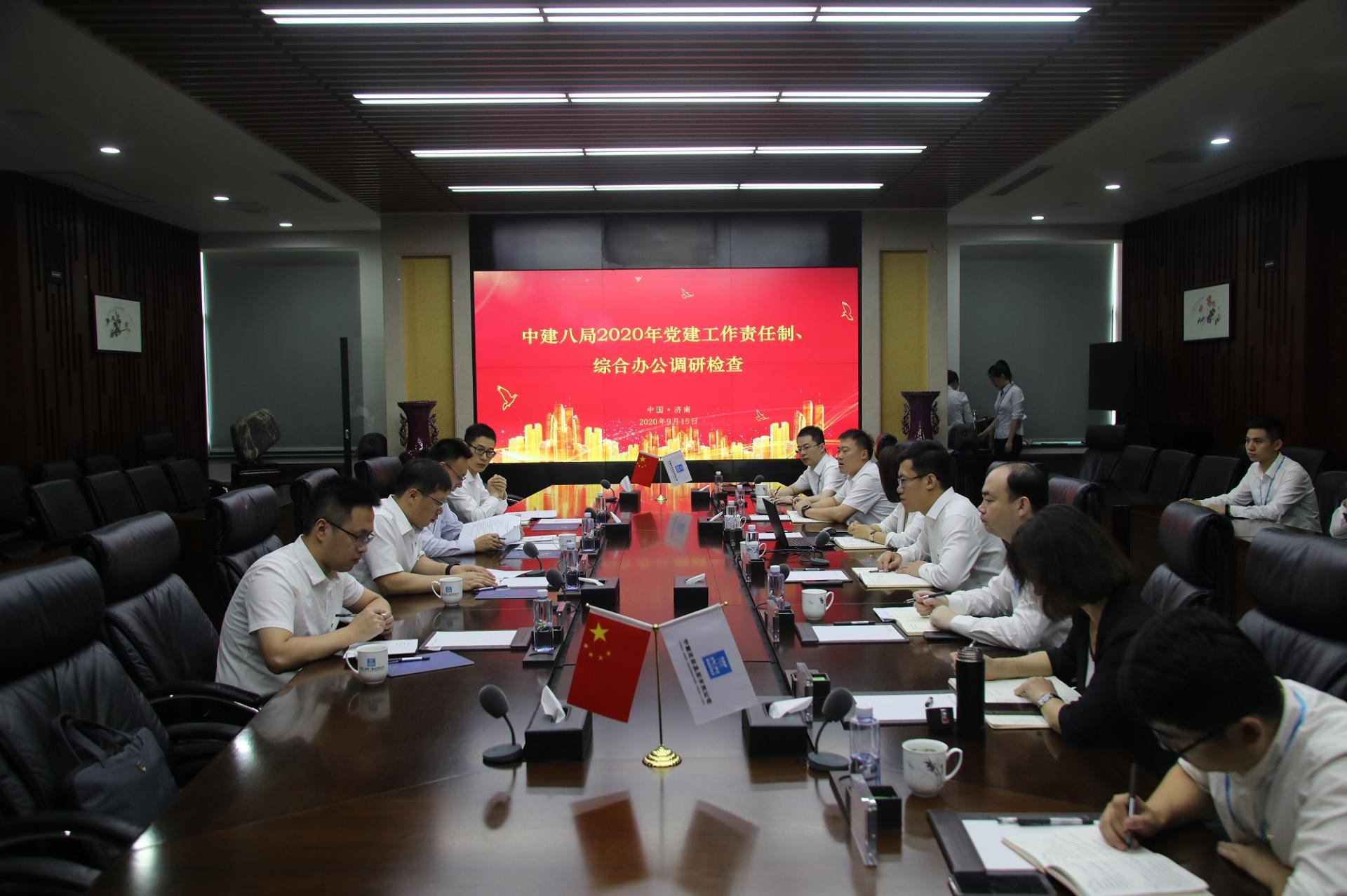 9月15日,由中建八局工會副主席、工會工作部部長王曉波帶隊,局黨委工作部副部長、團委書記南亮軍,黨委工作部業務經理趙生智,辦公室業務經理胡佳明一行來到公司總部,開展2020年黨建工作責任制、綜合辦公調研檢查。