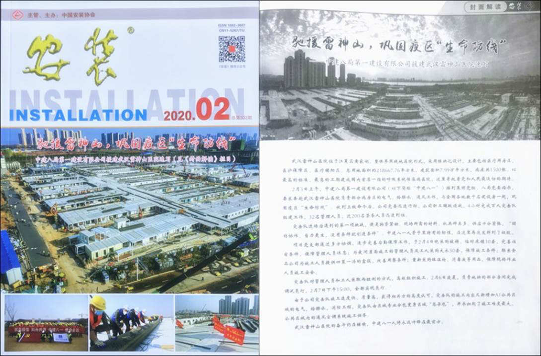 公司援建武漢雷神山醫院事跡登上《安裝》雜志封面