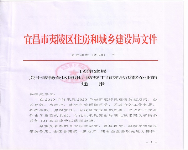 4月12日,宜昌萬達(dá)項目喜獲宜昌市夷陵區(qū)住房和城鄉(xiāng)建設(shè)局發(fā)文表揚。
