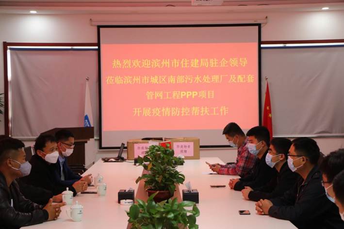 4月12日下午,濱州市住建局重大項目推進(jìn)指揮部駐企負(fù)責(zé)人王興照一行三人,至濱州市城區(qū)南部污水處理廠及配套管網(wǎng)工程PPP項目開展疫情防控幫扶工作,并為項目帶來了一批防疫物資。