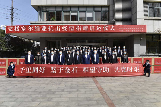 3月27日,中建八局一公司與山東高速集團(tuán)國(guó)際合作公司聯(lián)合為塞爾維亞捐贈(zèng)的抗擊疫情物資在濟(jì)南順利啟運(yùn),山東高速集團(tuán)國(guó)際合作公司黨委書(shū)記、董事長(zhǎng)鄧文華、總經(jīng)理、黨委副書(shū)記蔡錕,公司黨委書(shū)記、董事長(zhǎng)董文祥、總經(jīng)理、黨委副書(shū)記齊朋等參加了此次啟運(yùn)儀式。