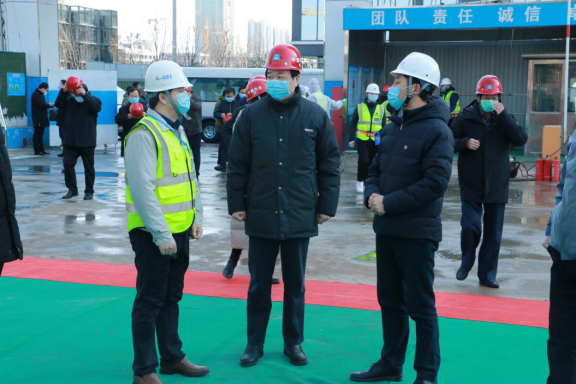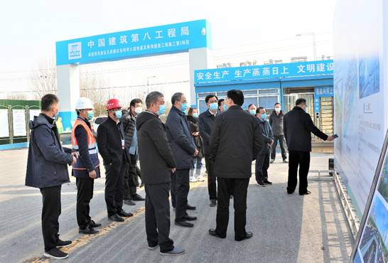 3月3日,河南省常務副省長黃強一行蒞臨中建八局鄭東新區科學大道地道項目檢查復工與防疫工作開展情況。