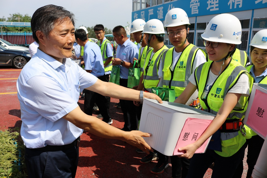 8月20日,山東省建設工會主席薛希法、副主席邵永立一行來到公司濟南融創文旅城項目開展調研暨“送清涼”慰問活動。