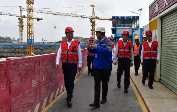 4月17日,局黨委書記、董事長校榮春、局副總經理韓興爭、華南分局黨委書記許啟新、華南分局副局長楊深奎、一公司副總經理齊朋等一行蒞臨中廣核項目對安全生產、項目履約、創新創效等工作進行全方位、多角度突擊指導,華南公司黨總支副書記谷力,項目經理宮華路、項目總工陳先磊、項目生產經理王世杰陪同。