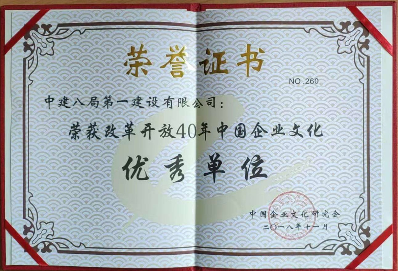 2018年11月17—19日,“回眸改革開放40年 開啟企業文化新時代——中外企業文化2018深圳峰會”召開,會上對企業文化建設先進組織和個人進行了表彰,公司榮獲“改革開放40年中國企業文化優秀單位”稱號。