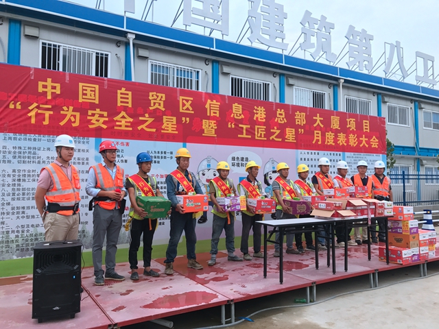 公司中國自貿區信息港總部大廈項目舉行“行為安全之星”暨“工匠之星”月度表彰大會