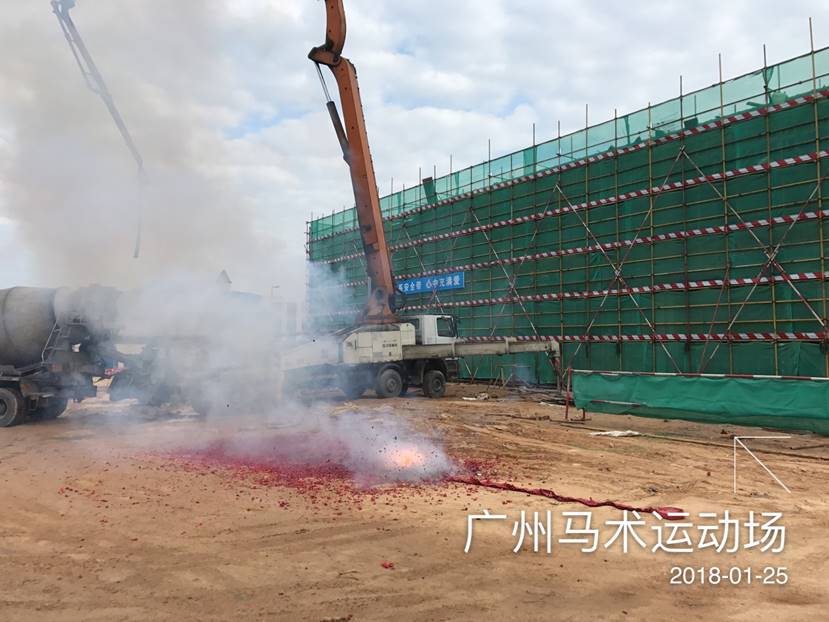 1月25日清晨,伴隨著最后一方混凝土的澆筑,在業(yè)主、監(jiān)理及項(xiàng)目部領(lǐng)導(dǎo)的見證下,公司廣州香港馬會(huì)馬匹訓(xùn)練場項(xiàng)目賽事中心正式完成主體結(jié)構(gòu)封頂。