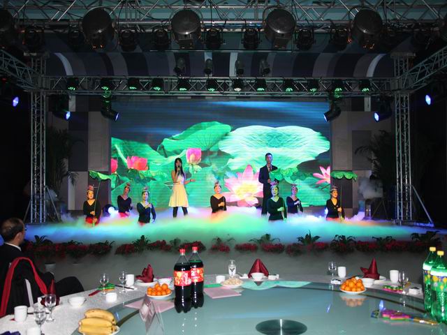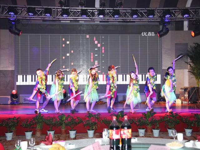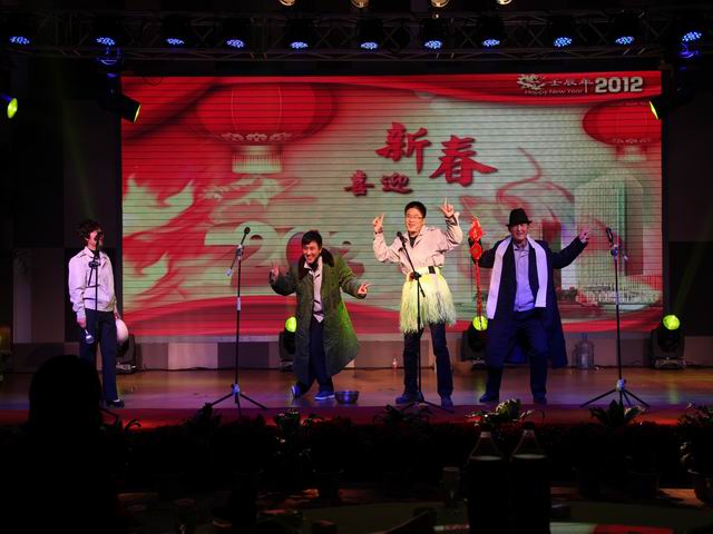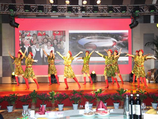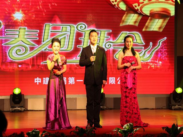 團拜會演出在富有激情的舞蹈《南非風情》中拉開了帷幕。整臺演出精彩紛呈,高潮迭起。員工自編自演的各類節目豐富多彩,幸運大抽獎更是讓員工驚喜連連,演出現場歡聲笑語不斷。相聲《咱公司的那點事》、小品《牛郎與織女》、啞劇《候車室的故事》讓現場觀眾笑成一片;歌曲《相親相愛》唱出了一公司員工團結互助是一家人的心聲;歌伴舞《荷塘月色》在現場燈光和舞臺的配合下,為大家呈現了一幅唯美的畫面;別具風格的三句半《公司喜事多》,讓大家過了一把情景劇版三句半隱;情景詩朗誦《閃亮的日子 閃亮的青春》則為大家講述了一群年輕人到工地后半年的切身感受;歌手楊坤的《無所謂》被演員模仿的惟妙惟肖,足以以假亂真;舞蹈串燒《青春旋律》讓大家感受到了公司年輕人的青春活力;小品《施工情》講述了公司員工舍小家顧大家、令行禁止、使命必達的精神,得到了現場觀眾的共鳴。演出在氣勢磅礴的《走向復興》中圓滿落幕,出席團拜會的領導同志走上舞臺,同全體演員合影留念。