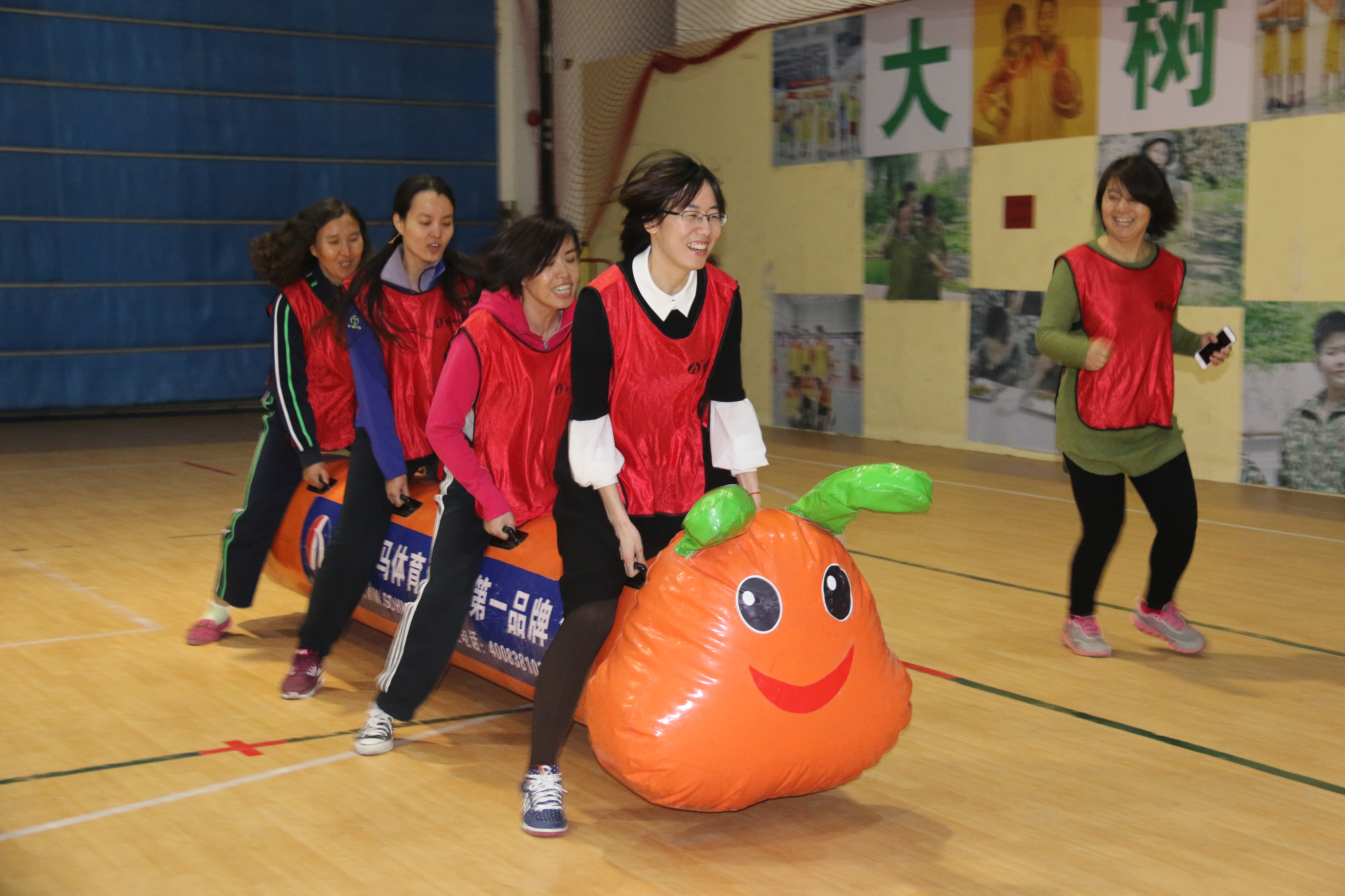 趣味活動,趣意橫生 3月8日下午,一場小型趣味運動會在濟南會展中心室內活動場舉行,機關女職工20余人參加了活動。 活動設置了騎毛毛蟲、袋鼠運瓜、財源滾滾、同舟共濟四項,女職工們分成女神、女王、女皇三個隊進行比賽,她們一會兒變成“袋鼠”,一會又成“履帶”,有時還得降服一條“毛毛蟲”。最讓大家暢懷一笑的是“袋鼠運瓜”,每個人穿著袋鼠服在場上蹦蹦跳跳的,為最短時間完成“運瓜”任務努力拼搏!