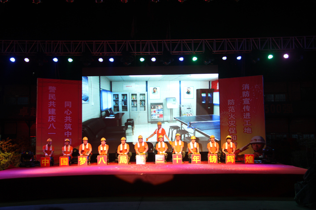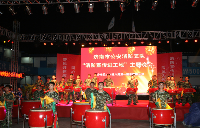 7月29日晚,由公司和濟南市公安局消防支隊聯合舉辦的“消防宣傳進工地”主題晚會在魯能領秀城項目成功舉辦。山東省總工會常委、生產部部長周克民、省消防總隊防火部部長張元祥、濟南市公安局消防支隊政委張才坤、市中區副區長趙延生、濟市總工會生產部部長張斌、公司領導以及業主、監理、項目管理人員、農民工等近千人觀看了演出。