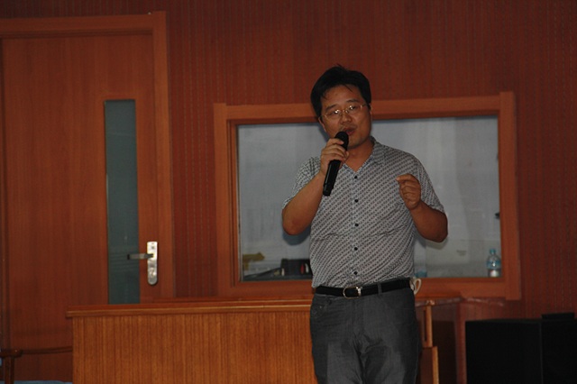 “揮揮手微笑著告別昨天,擁抱更蔥蘢的未來”,19點30分,晚會在一首《最美的答案》中拉開序幕。隨后大家紛紛亮出自己的才藝,模仿大比拼、小品、歌劇、合唱等精彩的節目將晚會逐步推入高潮。新員工王政模仿的費玉清,無論從聲音還是形體動作上都惟妙惟肖,讓大家贊口不絕。小品《一公司小夫妻》采用經典――《實話實說》風格,演繹了大家眼中的一公司,其中的精彩對話讓大家捧腹。教官團隊表演的格斗、拳術、棍術也讓大家大開眼界,為晚會增添了另一道光彩。面對現場熱烈的氣氛,公司領導也紛紛上臺獻上了精彩的表演,將整個晚會推向另一個高潮。董事長李永明為大家傾情演唱了《雨花石》和《活出個樣子來給自己看》,希望新員工們像雨花石學習,經得住平凡與寂寞,在平凡的崗位上做出不平凡的業績。黨委書記許紅聲情并茂,為大家朗誦了詩歌《青春萬歲》,展現了青春的無限美好與活力,她還演唱了《隱形的翅膀》,鼓勵大家在逆境中也要善于看到希望,堅強的奮斗下去。人力資源總監王有標也為大家演唱了《凡人歌》,贏得了陣陣掌聲。培訓人員工作團隊也為大家獻上了《相逢是首歌》。