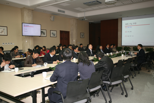 利用一天的時(shí)間,樊局以“制度、流程、效能”為切入點(diǎn),深入講解了制度最優(yōu)法則、1+6制度模式、1+6流程模式,指出知識(shí)制度化和管理流程化是企業(yè)管理發(fā)展的趨勢(shì),人與制度的有機(jī)結(jié)合才能構(gòu)成有效的效能管理。樊局結(jié)合影像、工具模板,對(duì)工作制度、管理流程、部門(mén)權(quán)限與職責(zé)設(shè)置等與大家工作息息相關(guān)的內(nèi)容進(jìn)行了講解,引起了大家的共鳴。
