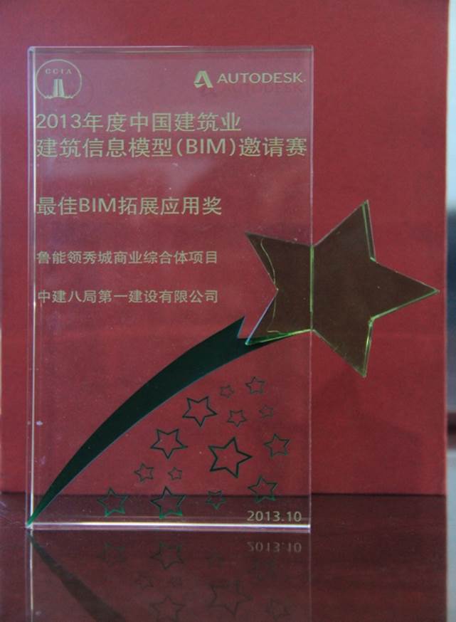 “2013年度中國建筑業建筑信息模型(BIM)邀請賽”,是由中國建筑業協會綠色施工分會與歐特克軟件(中國)有限公司聯合舉辦旨在落實國家綠色建筑方案、推動企業綠色施工技術改造升級,面向全行業各建設協會、設計及施工單位的高規格企業級專業賽事。賽事共設三項大獎――“最佳協同及數據互用獎”、“最佳拓展應用獎”、“最佳企業應用獎”。公司申報的《魯能領秀城商業綜合體項目――BIM技術的運用》,以其詳盡、全面、專業等特點,贏得了評委的認可,最終摘得“最佳拓展應用獎”。
