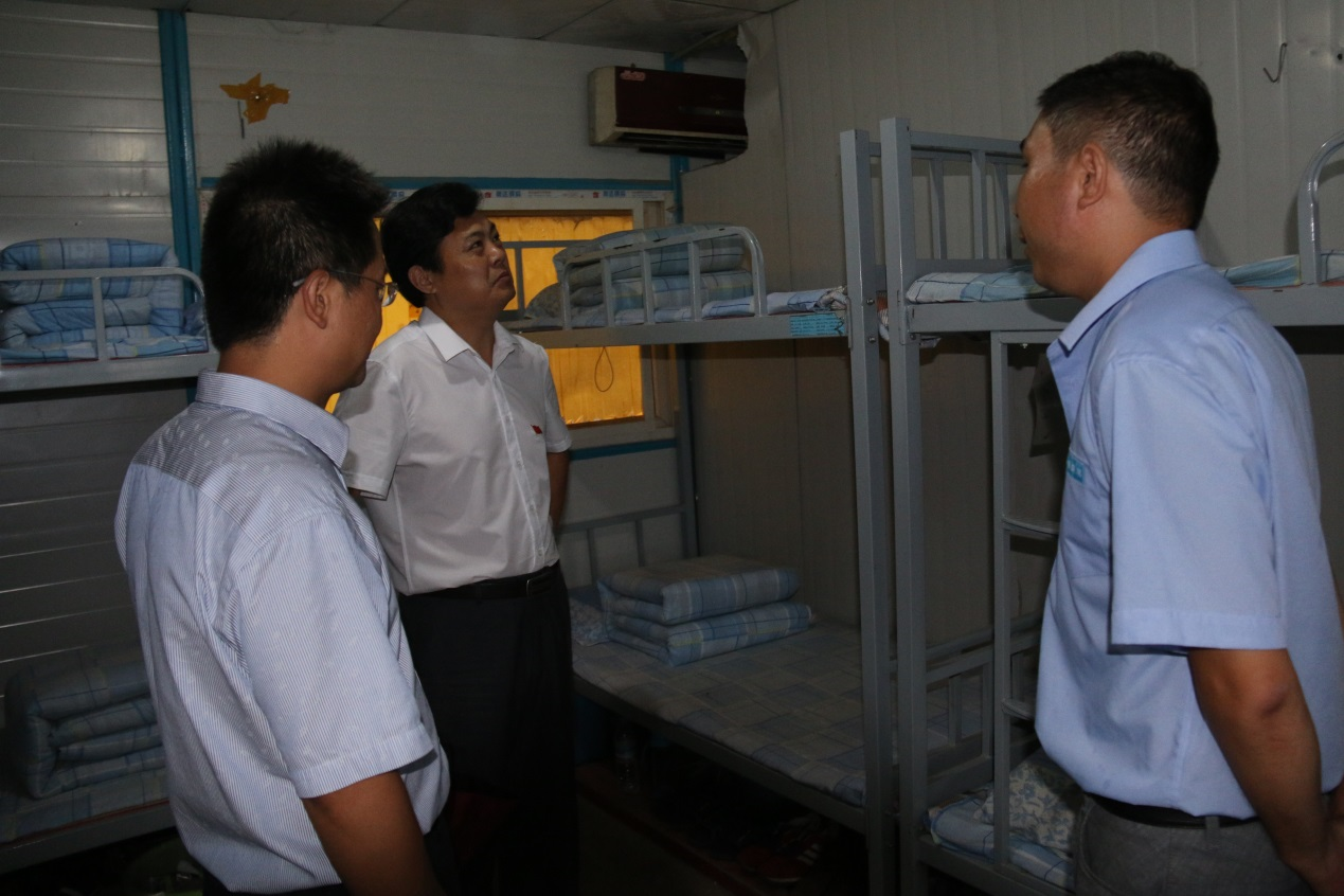隨后,蒲主席一行參觀了工會工作站、工人餐廳、工人軍事化管理宿舍,當得知項目部設立了醫務室、洗衣房、理發室,并為工人提供免費的綠豆湯時,蒲主席連連稱贊。