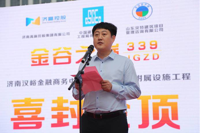 濟南高新控股集團董事長李昊、總經理王賡,凱賓斯基中國區域戰略策劃總監裴睿赫、山東貝特建筑項目管理咨詢公司有限公司董事長秦昶,中建八局副總經理、山東分局局長張作合 ,公司總經理哈小平等領導出席了封頂儀式。