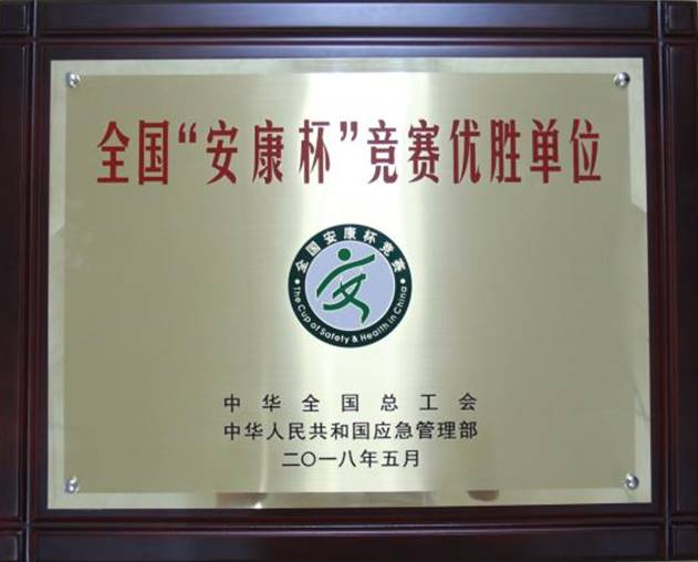 公司榮獲全國(guó)安全生產(chǎn)最高榮譽(yù)——全國(guó)“安康杯”競(jìng)賽優(yōu)勝單位