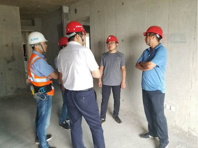 巡檢組首先在項目會議室傾聽了郭木興對項目的工程概況、工程進度、項目技術質量工作開展情況的工作匯報。隨后一行人在張哲慧、趙云蕾等陪同下到達項目施工現場,并分組開始對現場安全文明、質量缺陷及抽選樓層的實測實量等多個方面進行細致的檢查。現場實測檢查的同時,檢查組也對項目技術質量管理、工程簽證、工人工資發放等資料進行了檢查指導。