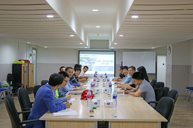 下午15時許,會議在項目地下二層會議室正式開始,在與會人員的簡單自我介紹之后,劉嘉東就目前的生產與管理、風險與控制等方面進行了匯報。隨后調研組就印尼建筑市場環境、建筑行業建設標準、人才培養與招聘等一系列問題,與項目人員進行了深入交流。陳鴻在講話中強調了本次調研的主要目的,即通過調研,掌握企業國際化經營情況并對其進行綜合分析和評價,進一步指導企業市場布局和結構調整工作,規范企業國際化發展戰略和規劃,監管企業境外投資和重大風險管控。