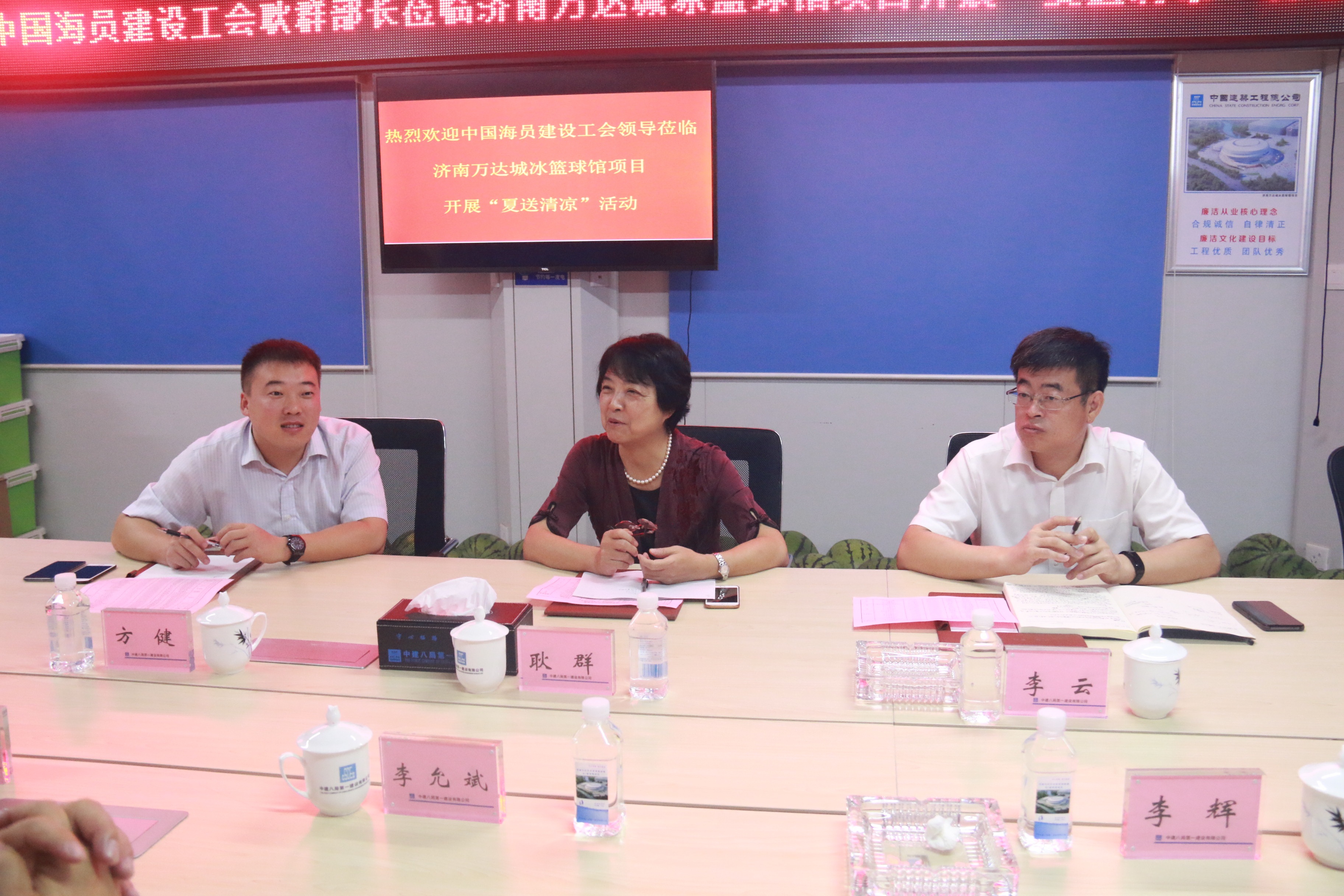 中國海員建設工會建筑工作部部長耿群蒞臨濟南萬達城冰籃館項目開展工會工作調研暨“夏送清涼”活動