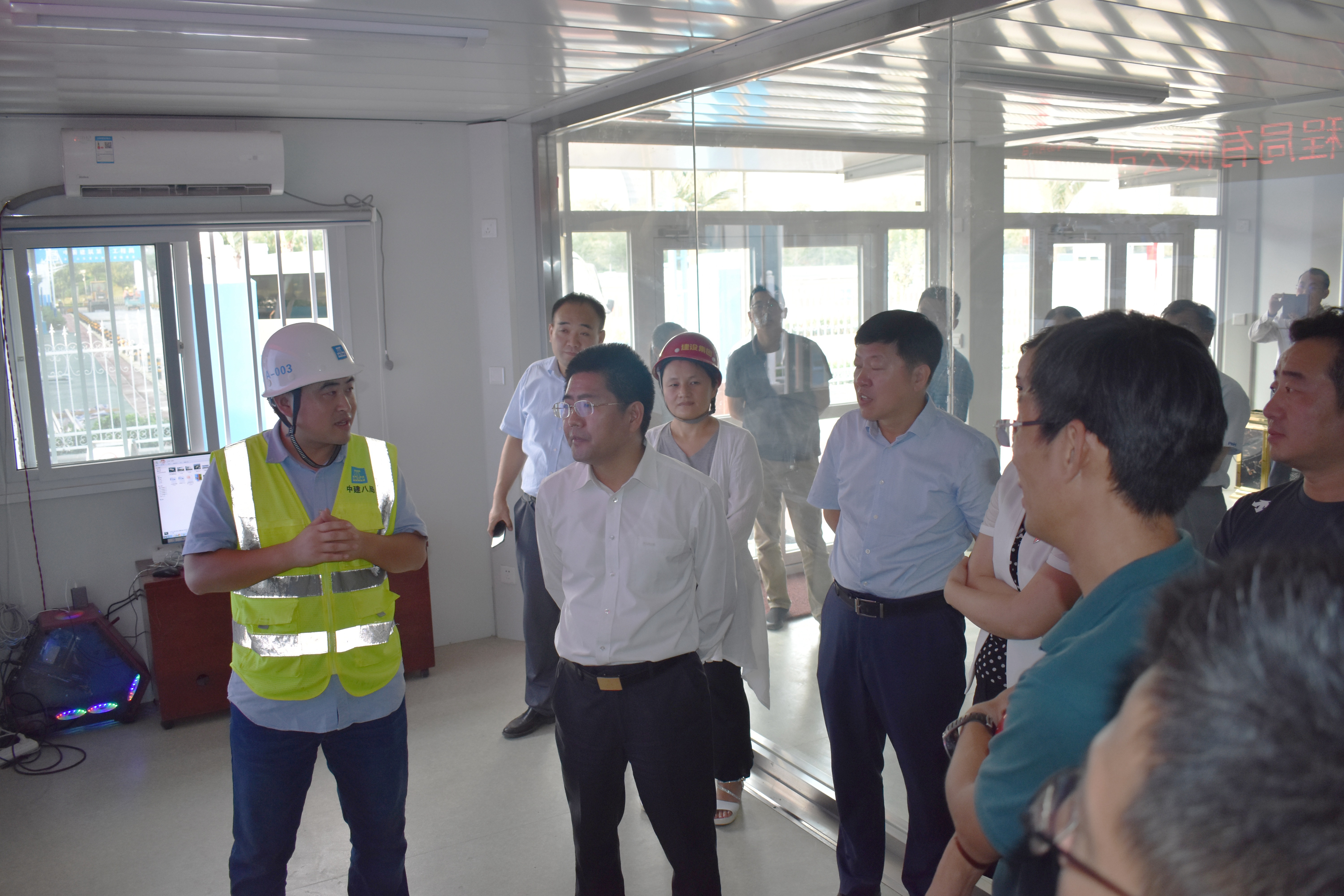 朱玉明區長一行人在項目總工羅忠鵬的引導下,參觀了項目施工現場。項目總工羅忠鵬詳細介紹了項目自開工到現在的施工進展情況。過程中朱玉明區長詢問了現場進度及施工情況,對現場進度、安全文明施工等給予了較高的評價。