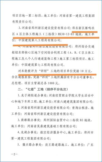 近日,鄭州市委常委、東區管委黨工委王鵬書記組織召開了鄭東新區大氣污染防治工作專題會。本次專題會是對東區460個項目動態監管檢查情況進行通報,共評出四個最好工地和七個最差工地,我公司雁鳴社區項目再次榮獲“四好工地”稱號,同時獲得10萬元獎勵。