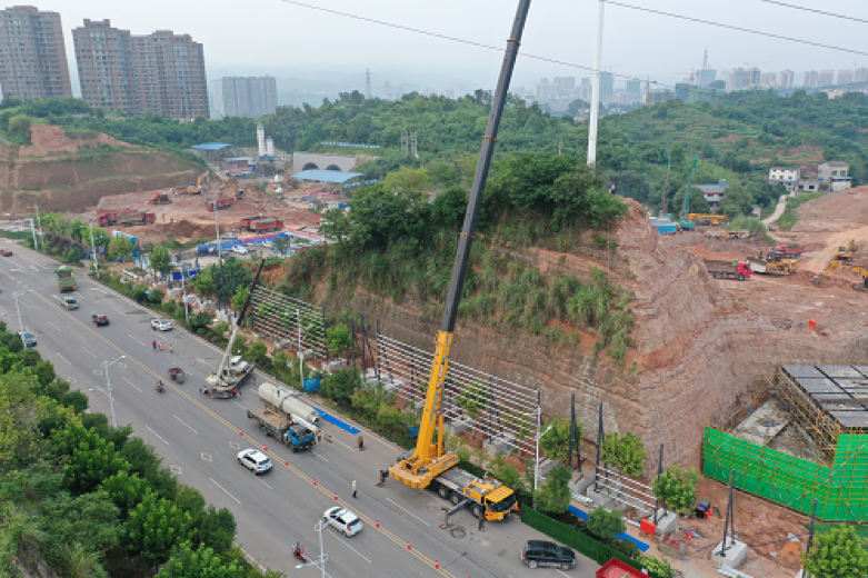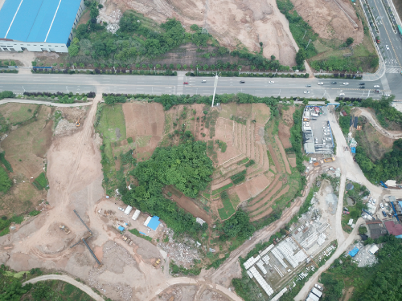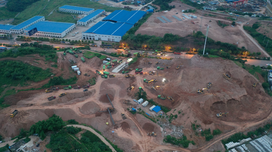 項目部自該地塊摘牌當(dāng)夜即進入現(xiàn)場開展施工,現(xiàn)場清障工作情況復(fù)雜,項目通過細化分工,責(zé)任到人,工作限時等措施,項目自2019年6月25日進場僅用23天,先后清除了當(dāng)?shù)卮迕袂嗝?、隧道項目部辦公區(qū)、隧道項目加工場、砂石廠、預(yù)制構(gòu)件廠、10KV高壓線、31米高信號塔、民房等障礙物。同時項目部適時調(diào)整施工總體部署,根據(jù)清障進度及時插入施工,為確保預(yù)售進度節(jié)點爭取了寶貴的時間。
