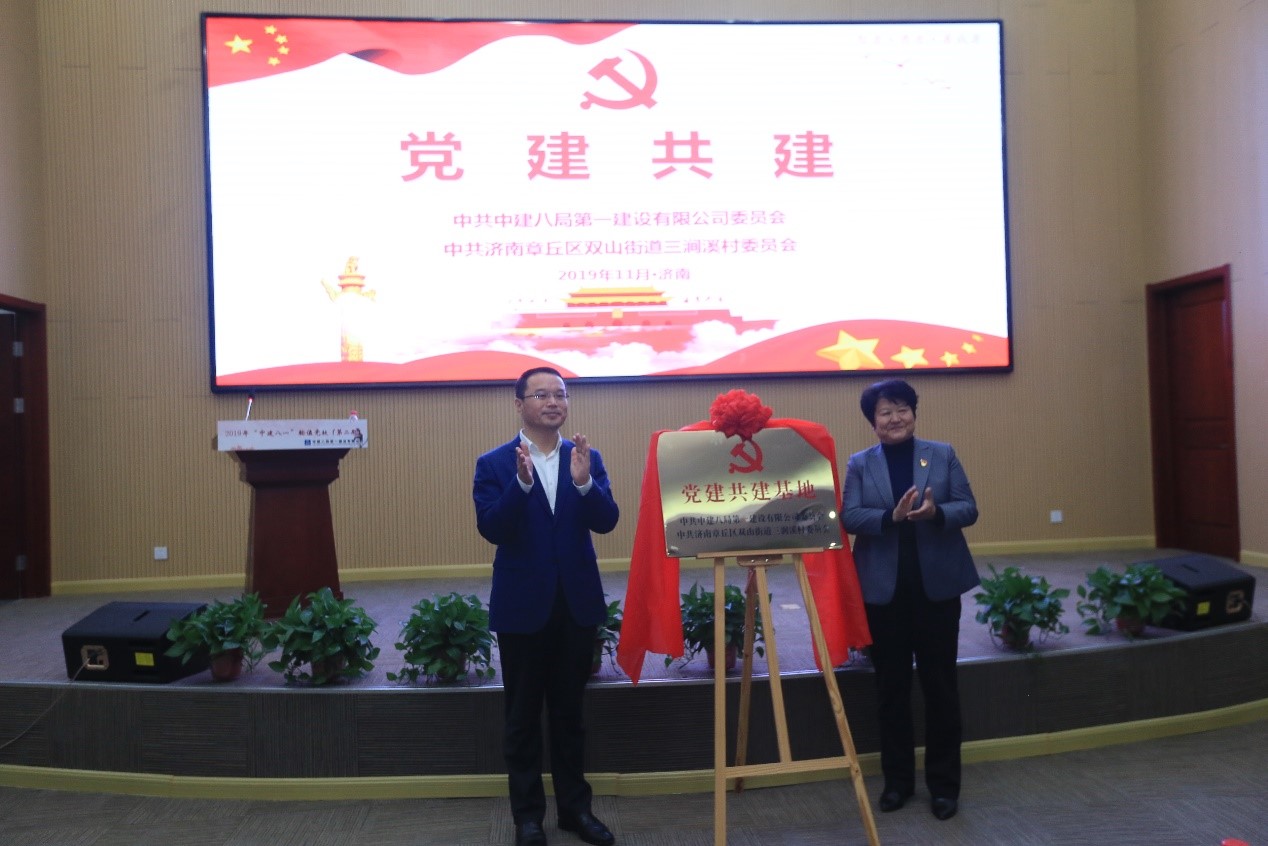 黨建凝聚合力,共建謀求發(fā)展。會上,董文祥與高淑貞共同為“中共中建八局第一建設有限公司、中共濟南章丘區(qū)雙山街道三澗溪村委員會黨建共建基地”揭牌,攜手推進基層黨建高質量發(fā)展。