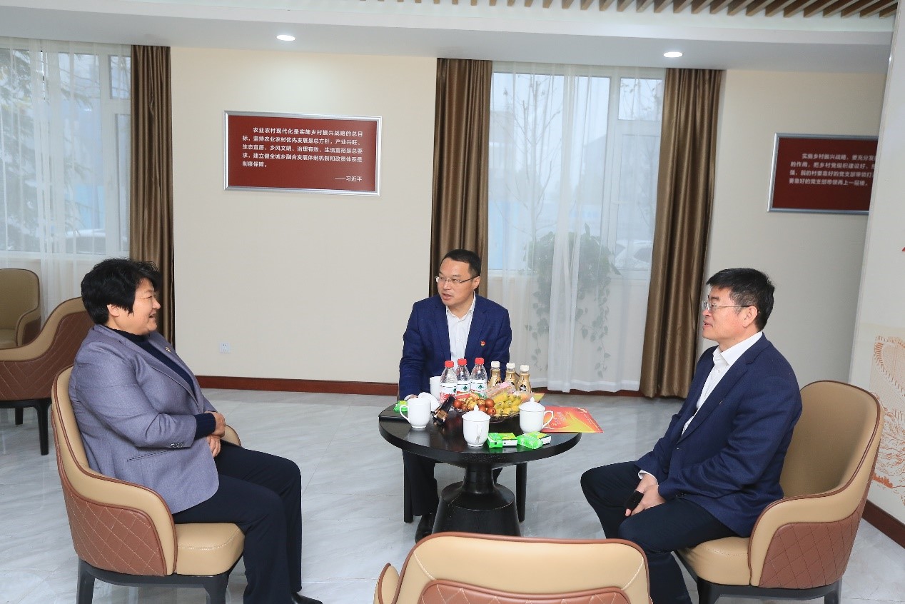 ▲ 董文祥、李云與高淑貞交流基層黨建和鄉(xiāng)村振興工作