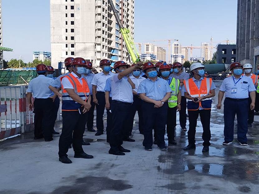 在項目現場,劉玉江詳細詢問了現階段工期要求下的施工進度,以及需要政府協調解決的問題。在聽取了項目經理關于現階段施工進度的匯報后,他贊揚了中建八局的鐵軍精神,要求在落實好疫情防控舉措的前提下,加快項目建設進度,抓好工程質量和施工安全,確保項目按時交付使用。