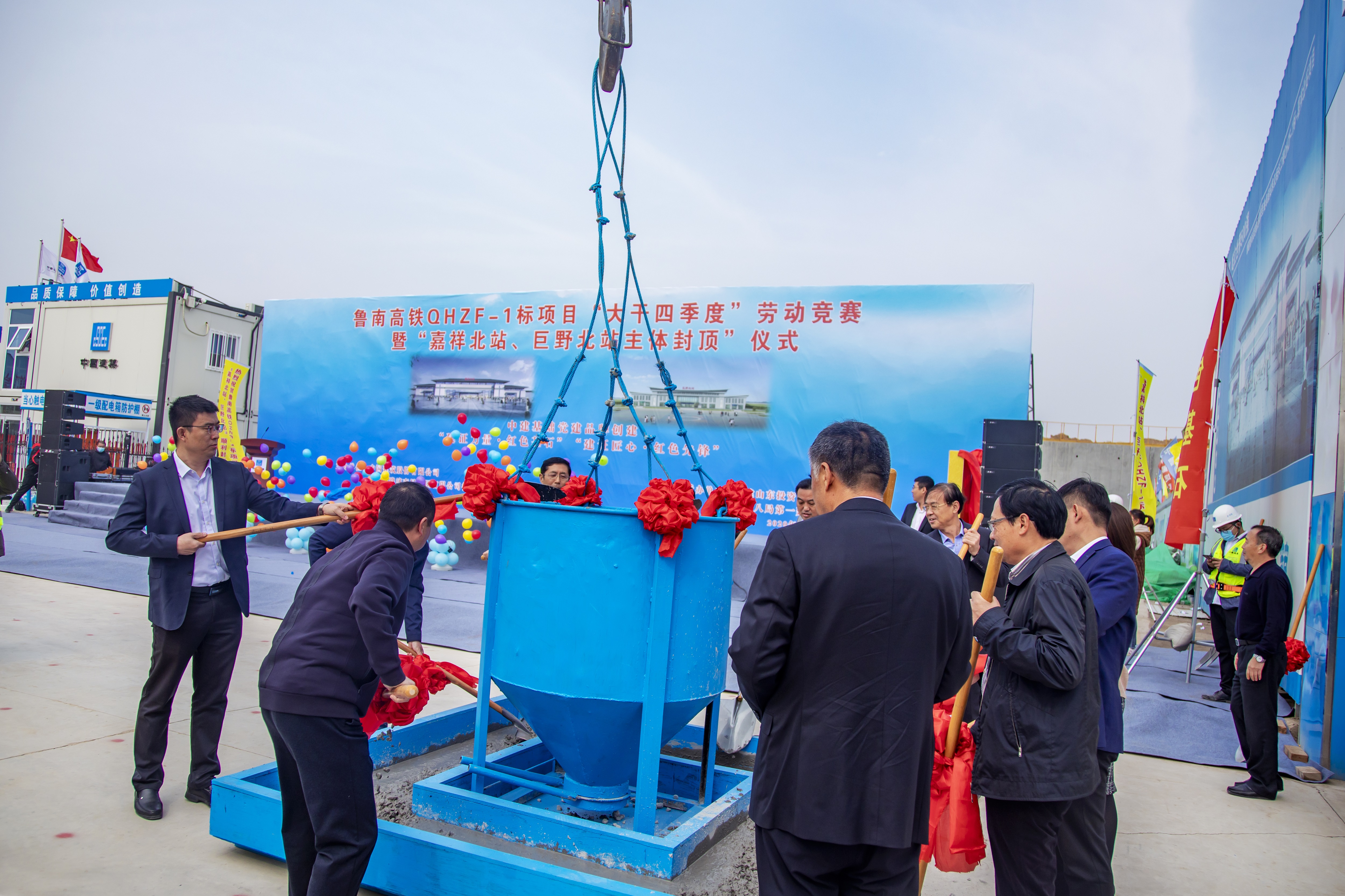 魯南高鐵站房項目舉行“大干四季度”勞動競賽暨“嘉祥北站、巨野北站主體封頂”儀式