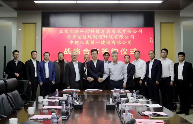 11月10日,中建八局一公司與北京宜通科創科技發展有限責任公司、北京電信規劃設計院有限公司簽署戰略合作框架協議。