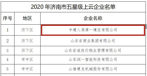 中建八一入選2020年濟(jì)南市五星級上云企業(yè)