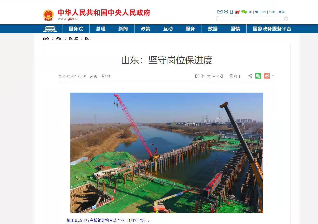 1月7日,聊城市黑龍江路跨徒駭河大橋,在-19℃嚴寒中進行了首次鋼結構主縱梁桿件吊裝。當晚,國務院官網點贊中建八一建設者不畏嚴寒、堅守崗位保證重點民生工程履約推進的事跡。