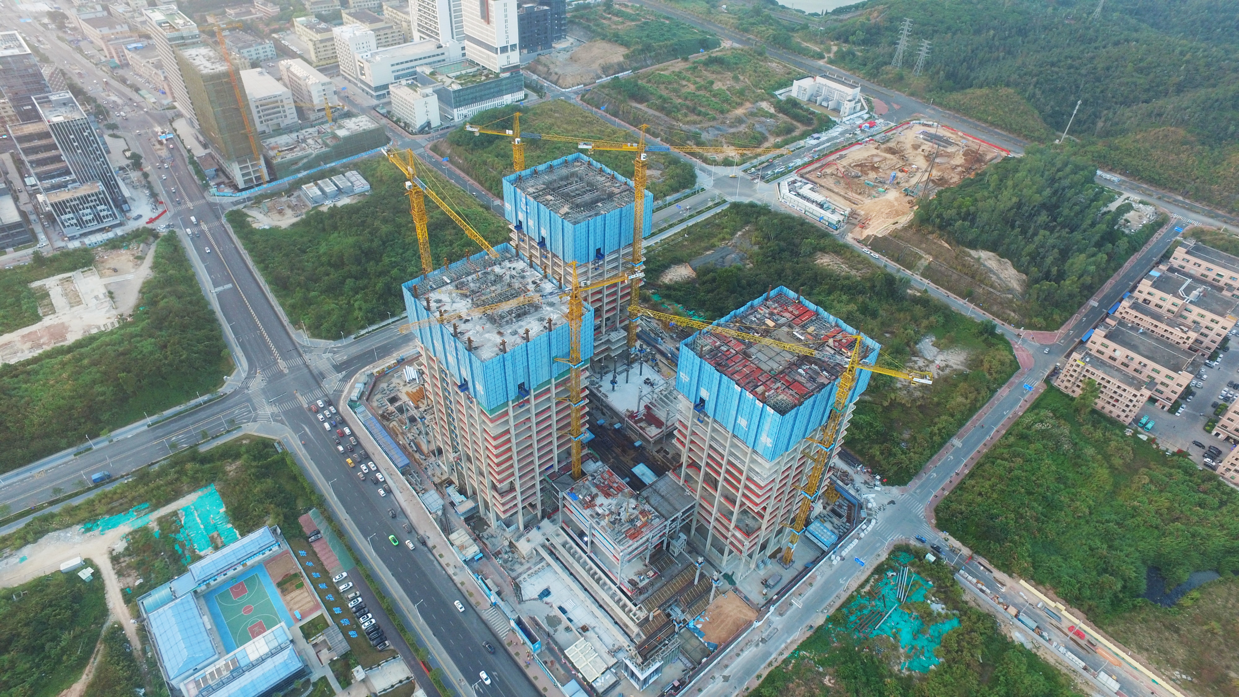 中廣核工程大廈工程項目,總建筑面積32.8萬㎡,由A、B、C三棟塔樓及回字形群樓組成。項目建成后,將成為中廣核工程有限公司總部大廈和研發實驗基地。(陳洪磊)
