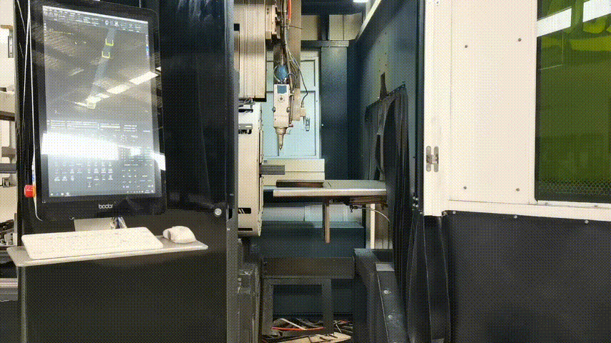 易裝工廠搭載的激光切割擴孔機,可覆蓋目前所有在建幕墻項目裝飾業務,利用可視化智能操作系統實現轉接件和埋板的擴孔以及鋁板幕墻鋼龍骨一體化切割,平均47秒可完成1榀鋼龍骨基層6個斷面的切割工作。