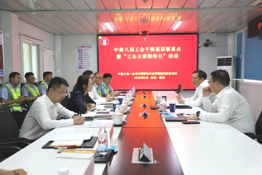 期間,與會領導深入項目施工現場,實地查看了工程建設進展,并開展中國勞動關系學院與中建八局座談交流會,就工會建設、項目進展、人才培養等方面進行深入交流。
