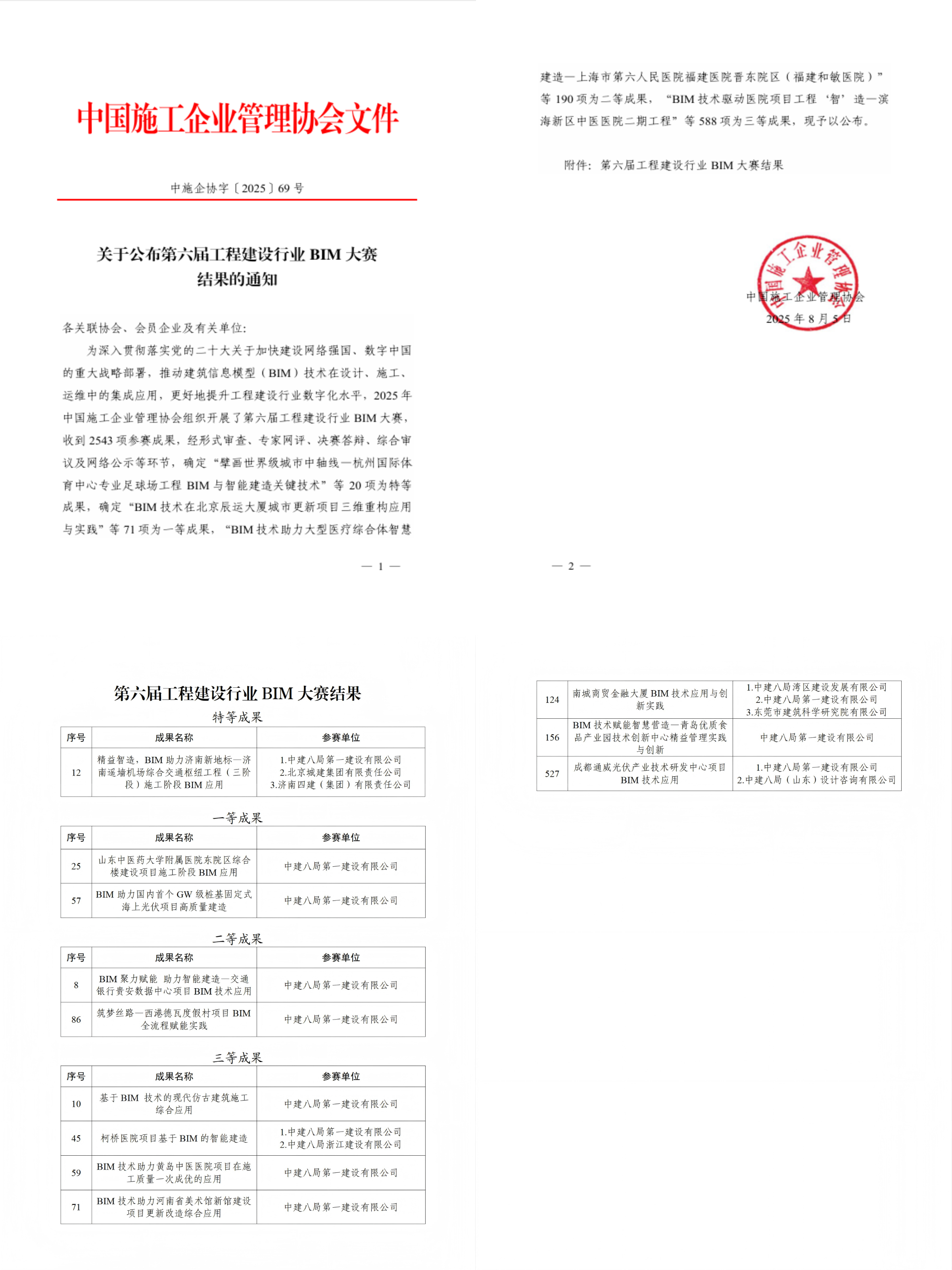 近日,中國施工企業管理協會正式公布第六屆工程建設行業BIM大賽成果,中建八一榮獲特等成果1項、一等成果2項、二等成果2項、三等成果7項,獲獎項目涵蓋機場建設、醫療衛生、海上光伏、仿古建筑、工業園區等多個領域,充分展現公司智能建造與數字轉型領域特色優勢。