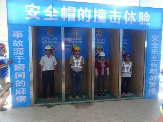 在項(xiàng)目安全總監(jiān)朱廣帝的代領(lǐng)下,農(nóng)民工來到體驗(yàn)館,分別進(jìn)行了“安全帶使用體驗(yàn)”、“滅火器使用安全體驗(yàn)”、“綜合用電體驗(yàn)”、“移動式操作平臺安全體驗(yàn)”、“安全帽撞擊體驗(yàn)”、“洞口墜落安全體驗(yàn)”、“平衡木安全體驗(yàn)”、“安全防護(hù)欄桿的倒塌體驗(yàn)”等多個項(xiàng)目的體驗(yàn)。體驗(yàn)結(jié)束后,項(xiàng)目管理人員還采用電視講解的方式,通過多起安全事故案例,讓農(nóng)民工深切地體會到安全作業(yè)的重要性,自覺學(xué)習(xí)、掌握安全生產(chǎn)教育的知識。