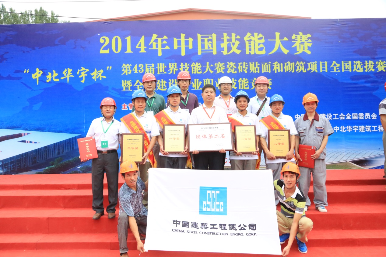 7月22日,2014年中國技能大賽――“中北華宇杯”第43屆世界技能大賽瓷磚貼面和砌筑項目全國選拔賽暨全國建設行業職業技能競賽在北京順義舉辦。公司選派的參賽選手劉學江憑借精湛的技藝,以第二名的成績榮獲該項目的一等獎,并協助中建代表隊以優異成績獲得團體第二名。