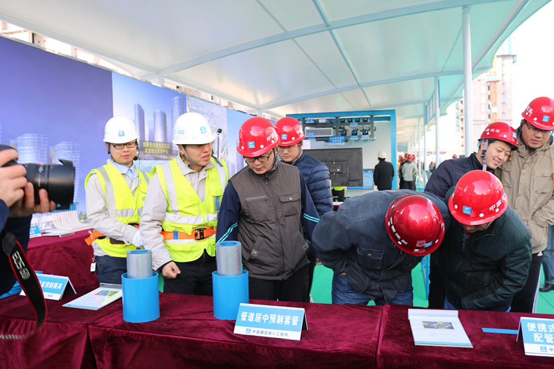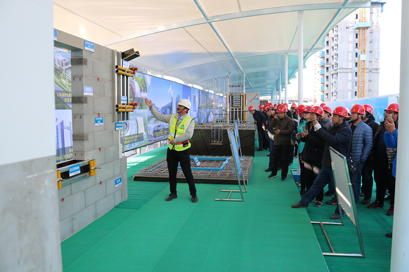 觀摩團(tuán)一行首先在項(xiàng)目會(huì)議室聽取了項(xiàng)目關(guān)于“新技術(shù)應(yīng)用、質(zhì)量常見(jiàn)問(wèn)題的亮點(diǎn)做法、BIM應(yīng)用于智慧建造、揚(yáng)塵治理措施”等介紹。隨后,觀摩團(tuán)在項(xiàng)目經(jīng)理張志剛的引導(dǎo)下,先后參觀了海綿城市、透視混凝土地面、鋼板道路、風(fēng)光互補(bǔ)太陽(yáng)能路燈、新技術(shù)應(yīng)用樣板展示區(qū)、各分項(xiàng)工程亮點(diǎn)做法展示區(qū)、智慧建造體驗(yàn)館、工序樣板層和交房樣板層、安全體驗(yàn)區(qū)。截至26日下午17時(shí),項(xiàng)目當(dāng)天已累計(jì)接待觀摩人員2125人,預(yù)計(jì)27日觀摩人數(shù)將達(dá)到3000余人。