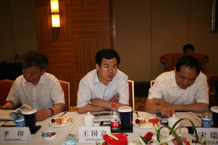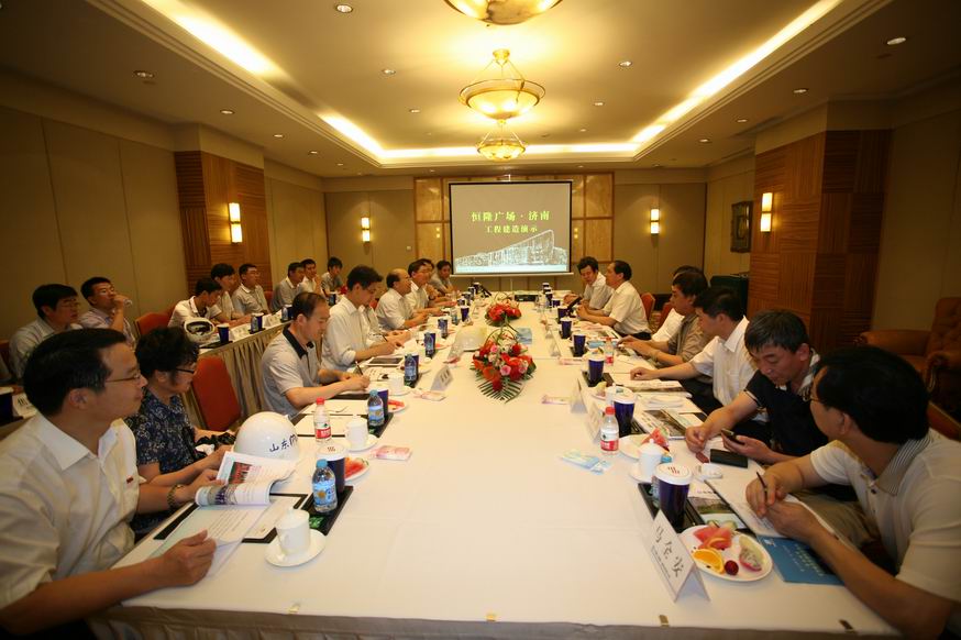 宋瑞乾一行首先深入施工現場,實地查看了工程建設情況。宋局長邊走邊看,不時與項目管理人員進行交流,對恒隆廣場項目施工質量和施工技術給予了充分肯定。當看到樓層各部位都專門設置有臨時衛(wèi)生間和吸煙區(qū)時,宋局長非常高興,稱贊中建八局的管理真正實現了“規(guī)范化”。隨后宋局長一行來到項目會議室,認真聽取了項目部關于工程概況、施工進度、工程管理重點、質量控制措施等各方面情況的詳細匯報。