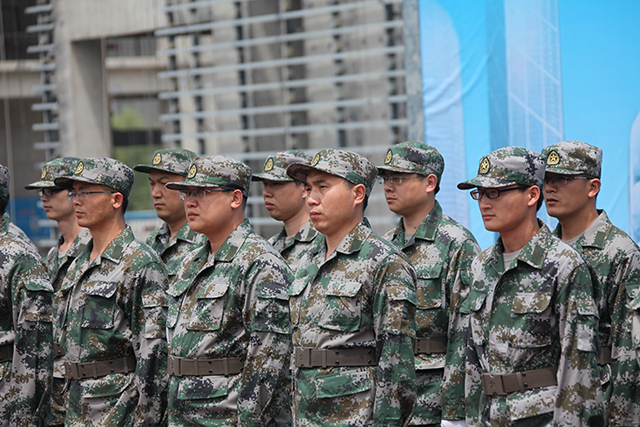 一進門,項目宣傳屏上的員工笑臉讓大家眼前一亮:微笑的表情、飽滿的精神狀態,讓人感受到了項目積極向上的正能量。會議前,與會領導共同觀看了項目準軍事化管理表演,整齊的步伐、有力的動作、嘹亮的口號聲贏得了大家的注目,在場人員紛紛拿出手機拍照留影。