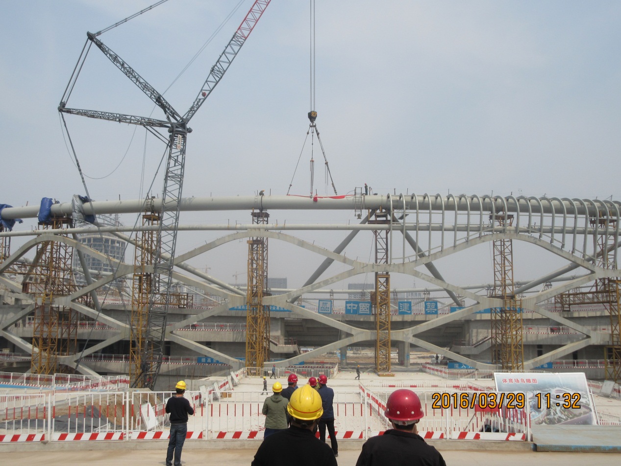 3月29日上午,棗莊市體育場項目部鋼結構壓力環梁順利合攏,棗莊市住建局、體育局主要領導出席儀式。