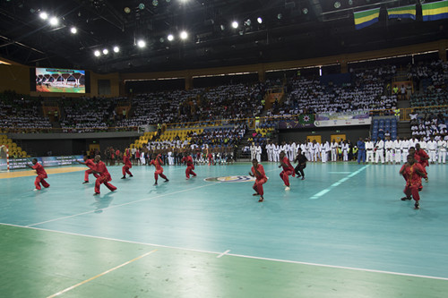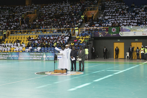 典禮上,體育部部長Mathias Otounga Ossibadjouo在賀詞中表達了對中建集團的真誠贊揚,對中建全體管理人員在如此緊張的工期內實現的完美履約表示敬佩與感謝。施洪剛代表建設單位發表賀詞,對加蓬政府及人民對體育館的支持表達了感謝之情,同時希望能與加蓬共和國繼續合作,繼續與加蓬政府與人民一道,共創加蓬共和國的美好明天。祈福儀式之后,比賽場館內場進行了精彩紛呈的表演。