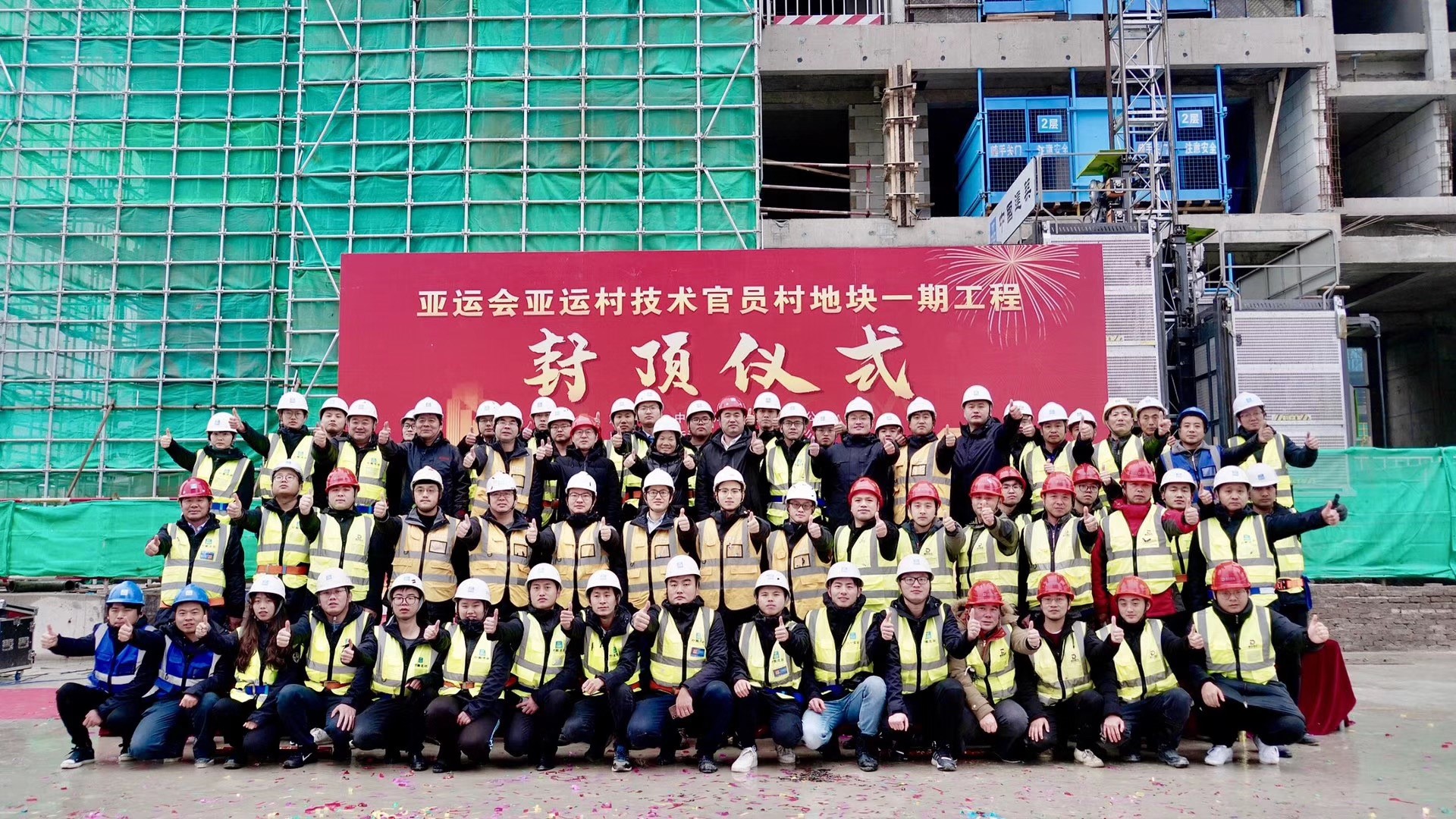 1月10號,由公司承建的杭州亞運會亞運村技術(shù)官員村地塊一期工程完成11#樓首棟主體封頂。華潤置地杭州公司助理總經(jīng)理、華東公司副總經(jīng)理邊守江及項目全體人員共同見證杭州亞運會亞運村技術(shù)官員村一期項目的這一階段性勝利。