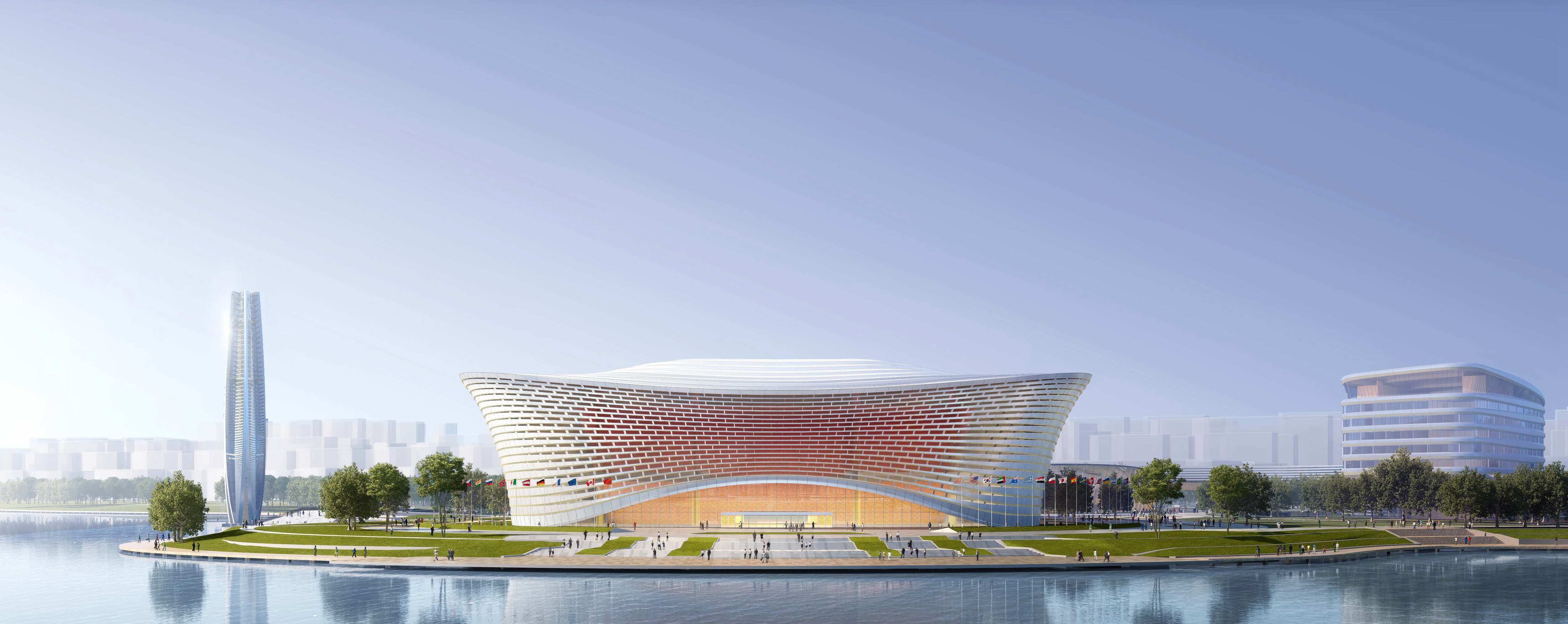 鄭州國際文化交流中心項目位于河南鄭州鄭東新區龍湖北岸,建筑面積約25.8萬㎡,分會議中心、會展中心、酒店三大功能。建成后將成為空中絲綢之路國際論壇永久會址,滿足舉辦高規格、綜合性國際首腦級會議的需求,進一步完善鄭州國家城市功能,提升鄭州國際都市形象。