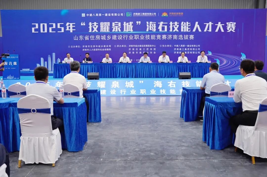 本次大賽由濟(jì)南市住房和城鄉(xiāng)建設(shè)局、濟(jì)南市人力資源和社會(huì)保障局聯(lián)合主辦,濟(jì)南市城鄉(xiāng)建設(shè)發(fā)展服務(wù)中心、濟(jì)南住建工匠學(xué)院、濟(jì)南市建筑業(yè)協(xié)會(huì)承辦,中建八局第一建設(shè)有限公司協(xié)辦。山東省住房城鄉(xiāng)建設(shè)廳一級(jí)調(diào)研員、總工程師王強(qiáng),濟(jì)南市住房和城鄉(xiāng)建設(shè)局黨組書記、局長(zhǎng)亓偉,山東省建設(shè)培訓(xùn)與執(zhí)業(yè)資格注冊(cè)中心主任徐海東,章丘區(qū)政府黨組成員、副區(qū)長(zhǎng)李經(jīng)國(guó),以及中建八一工會(huì)工作部、綠色建筑發(fā)展公司相關(guān)負(fù)責(zé)人和各參賽代表隊(duì)共同出席了活動(dòng)。