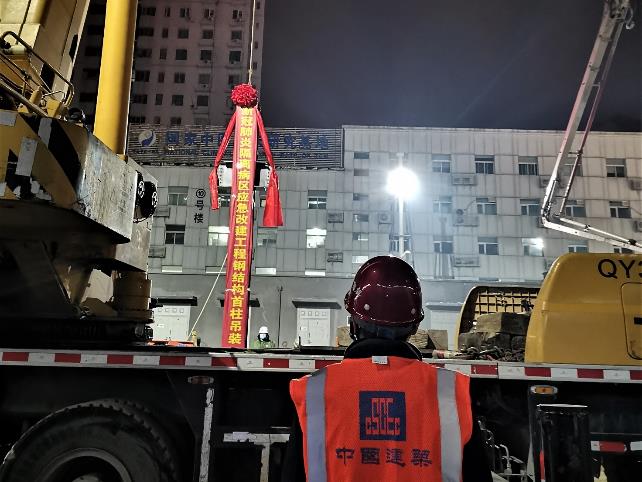 河南中醫藥大學第一附屬醫院發熱門診及隔離病房改擴建項目首根鋼柱吊裝