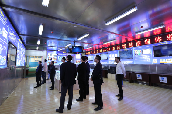 首先,參觀組參觀了中建八局高速·時代公館項目科技館,聽取了本工程關于利用BIM+3D打印技術進行實體樣板展示的匯報且親自體驗了VR技術。