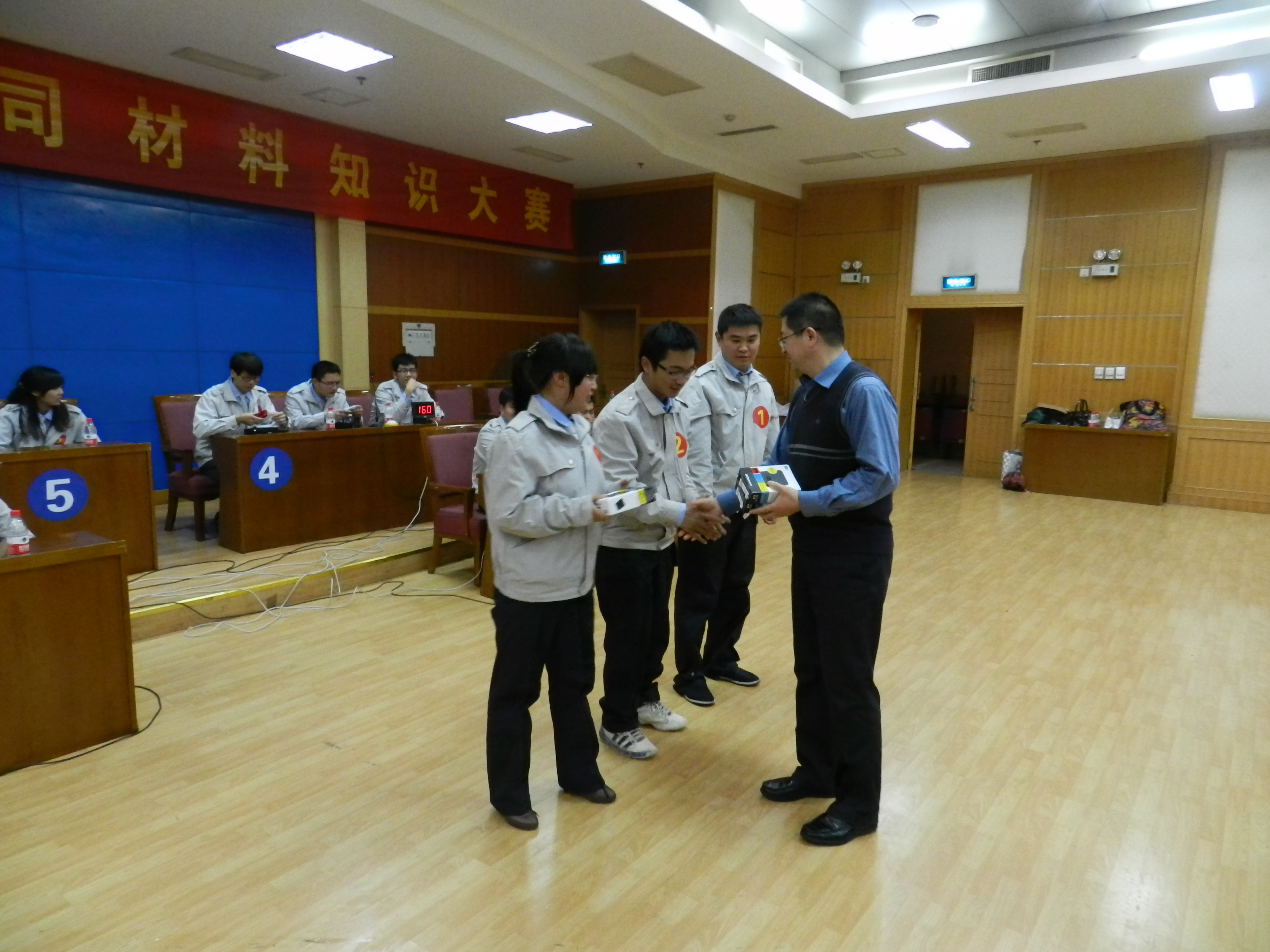 大賽首先由公司總經濟師車總致辭,車總強調了材料知識的重要性,要求大家要深入學習,學以致用。分公司總經濟師韓總宣布比賽正式開始。比賽過程中,參賽人員發揚鐵軍精神,賽出了水平、賽出了激情,充分展示了奮勇爭先、積極向上的精神風貌。最后,公司物資部梁經理進行了大賽總結,對此次大賽的組織與成果進行了高度評價,同時要求大家加強學習,并對獲獎隊伍表示祝賀,為本次大賽畫上了圓滿的句號。